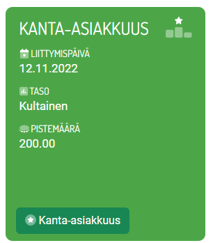 Näet kanta-asiakkuuteen liittyvät tiedot suoraan asiakkaan tiedot -näkymästä. Sen lisäksi Q4-2023 tulossa on kanta-asiakastapahtumat, joiden avulla voit seurata asiakaskohtaisesti tapahtumia, joita tilillä on tapahtunut.