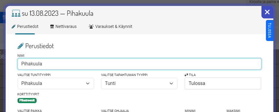 - Varausnäkymään on tuotu uusi V3 -näkymä