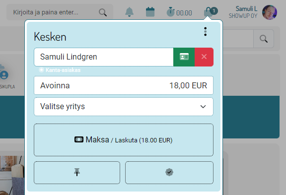 Kun asiakas tunnistetaan kassalla tilausta tehtäessä, ja kanta-asiakkuus on kytketty päälle, näet sen asiakkaan nimen alla. Asiakkaan tiedoissa näet myös kanta-asiakkuuteen liittyvät lisätiedot.